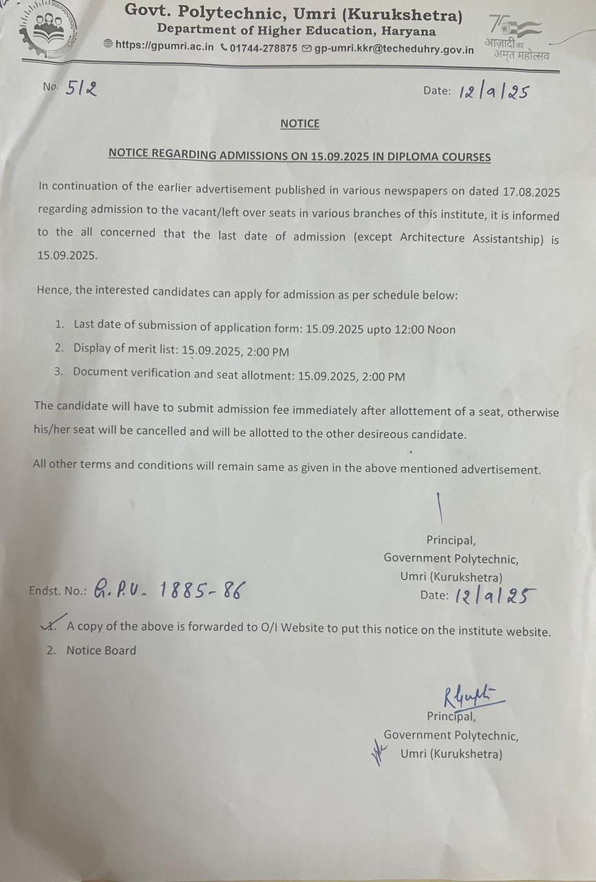 GOVERNMENT POLYTECHNIC, UMRI, (KURUKSHETRA)